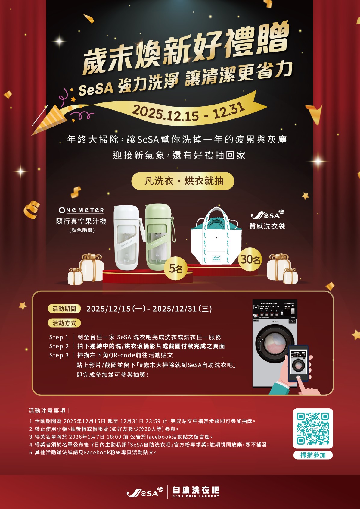 另Web網站已於10月底上架 , 感謝消費者支持與愛護 ,門市將不定期推出優惠 , 並於Web 官方網站公告。SeSA洗衣吧中和景平店將維持給顧客一個明亮整潔的環境及提供快速便捷洗衣體驗,成為您居家優閒的時光。